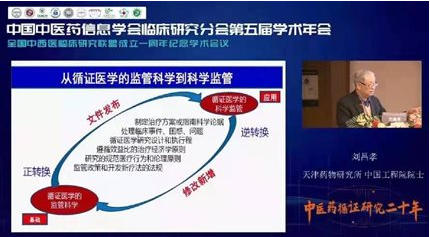 刘院士在报告《试说中药临床研究的循证医学问题》中从中医药是构筑我国医药安全供给体系的基本要素,讲述中医药的特殊性、复杂性、重要性以及中医药创新发展面临的问题和挑战,从药企、政府、医疗和营销服务的角度阐明临床研究的目的要因服务对象的不同有所调整,从受试对象、诊断证据和治疗证据三方面介绍中医药循证医学研究的方案与结果的一致性;指出基于循证医学的中医医药临床研究是提高中医药高质量发展的基础、循证科学及规范化临床研究势在必行;报告最后,刘院士从决策、素质、基础、培训、信息和权益等方面逐层递进总结监管科学在循证医学中的作用,并提出监管科学是助力中医药临床研究、提高效率、降低风险的关键环节。